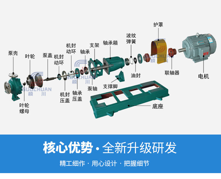 IH化工离心泵参照国际标准,结合国家相关标准设计制造。其性能、额定性能点和尺寸等效采用国标标准ISO2858