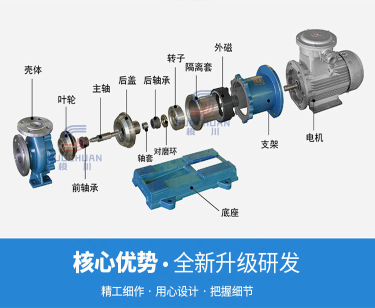 磁力泵结构磁紧凑、外形美观、体积小、噪音低、运行可靠、使用维修方便??晒惴河τ糜诨?、制药、石油、电镀、食品、电影照相洗印、科研机构、国防工业等单位抽送酸、碱液、油类、稀有贵重液、毒液、挥发性液体,以及循环水设备配套、过滤机配套。特别是易燃、易爆液体的抽送,选用此泵则更为理想。