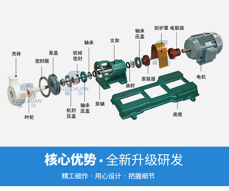 FSB和FSB(D)型离心泵,过流部件全部采用氟塑料合金制造,结构紧凑、操作简单、价格低廉。两种型号的泵壳、叶轮、机封等均可互换使用,深受农药、电子、造纸等行业的欢迎。